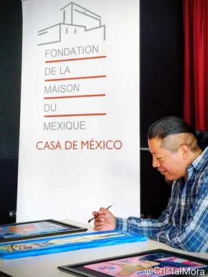 “La Casa de México en París se mostró interesada en mi trabajo artístico para organizar exhibiciones conmemorando el Día de Muertos con mis obras en técnicas de collage, acrílico, grabado en linóleo y en piedra”, apuntó Naxín desde la capital gala. En agosto él fue invitado a la Residencia Universitaria de México en París Fondation de la Maison du Mexique, por su directora Tania Jimena Enríquez Mier.