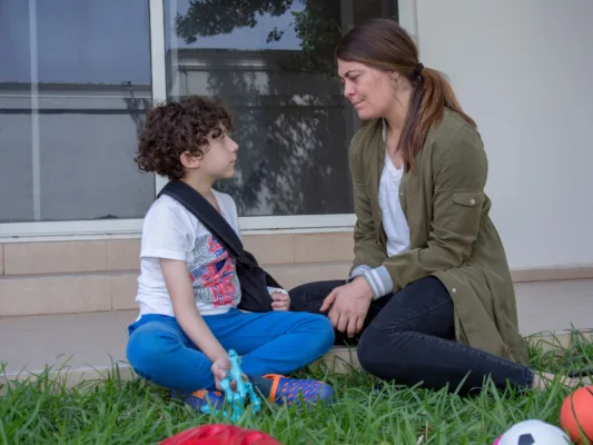 Un día toca a su puerta Santiago (Mateo Díaz), un niño que dejó caer un juguete al patio, y quiere recuperarlo.