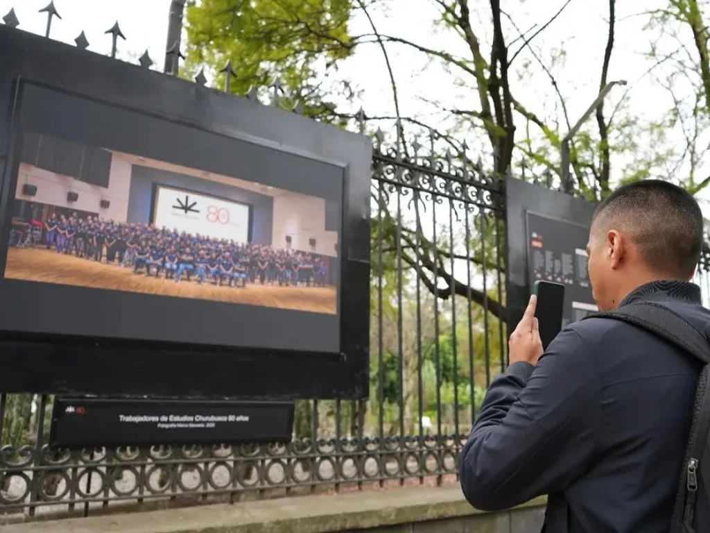 Para celebrar este legado, se montó la exposición “Estudios Churubusco y sus trabajadores: 80 años materializando historias” en la Galería Abierta Gandhi de las Rejas del Bosque de Chapultepec con fotografías, documentos y materiales históricos que destacan el trabajo de técnicos, artesanos, cineastas y personal especializado detrás de cada filmación.