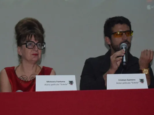 Representando la cinta Estela, del finado director Adrián Araujo, estuvieron en la rueda de prensa los actores, Meteora Fontana y Cristián Gamero.