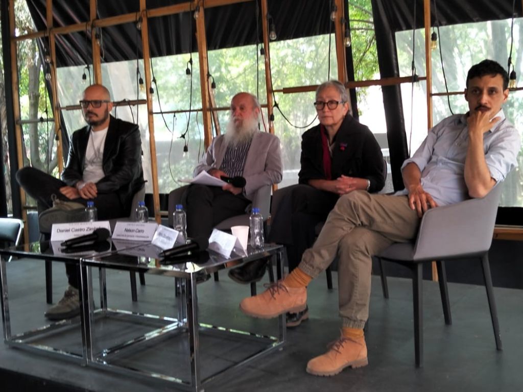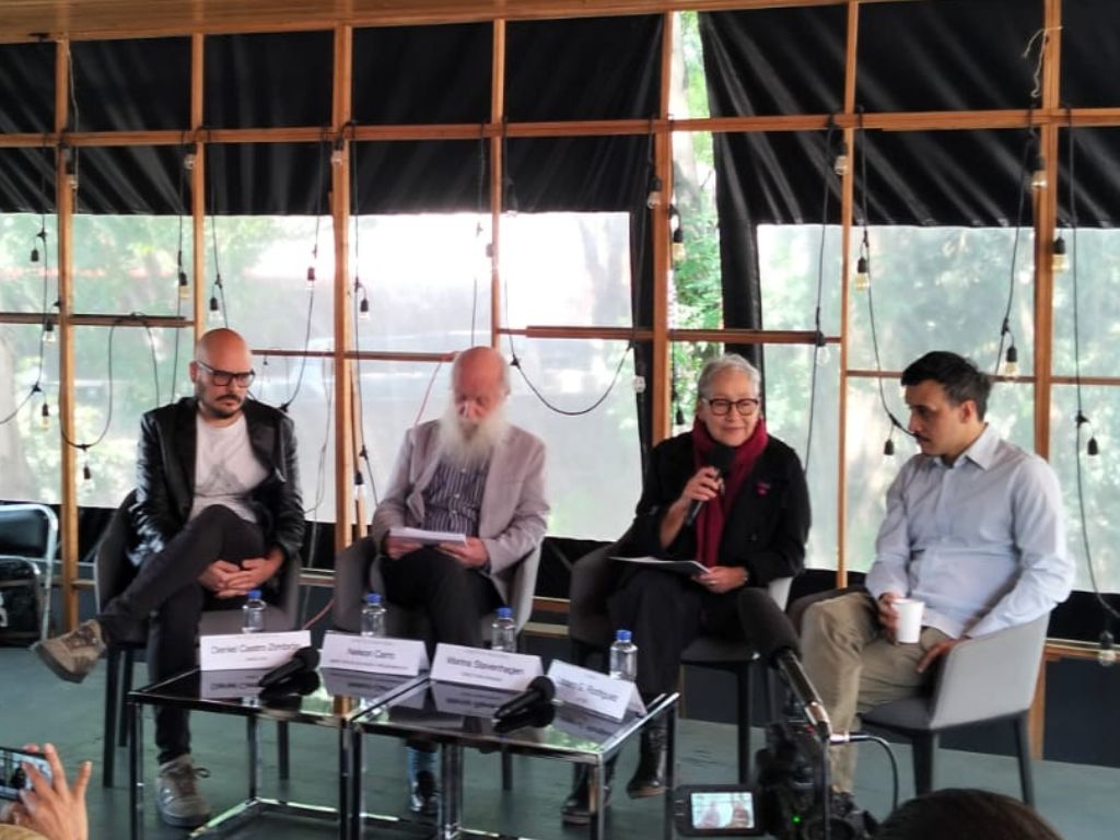 Daniel Castro Zimbrón, Nelson Carro, Marina Stavenhagen y Lázaro G. Rodríguez durante la conferencia de prensa. AMEXI/ Foto Dante Gutiérrez.