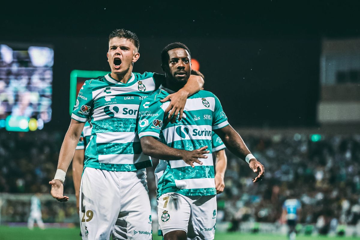 Cristian Dájome (derecha) aruinó el festejo de América. AMEXI/Foto/Tomada de @ClubSantos