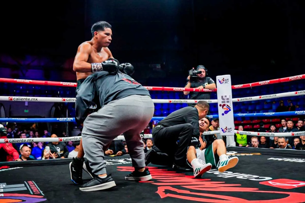 Pero fue el réferi quien no lo dejó levantarse, pero afortunadamente para el pupilo de Nacho Beristáin todo está bien.