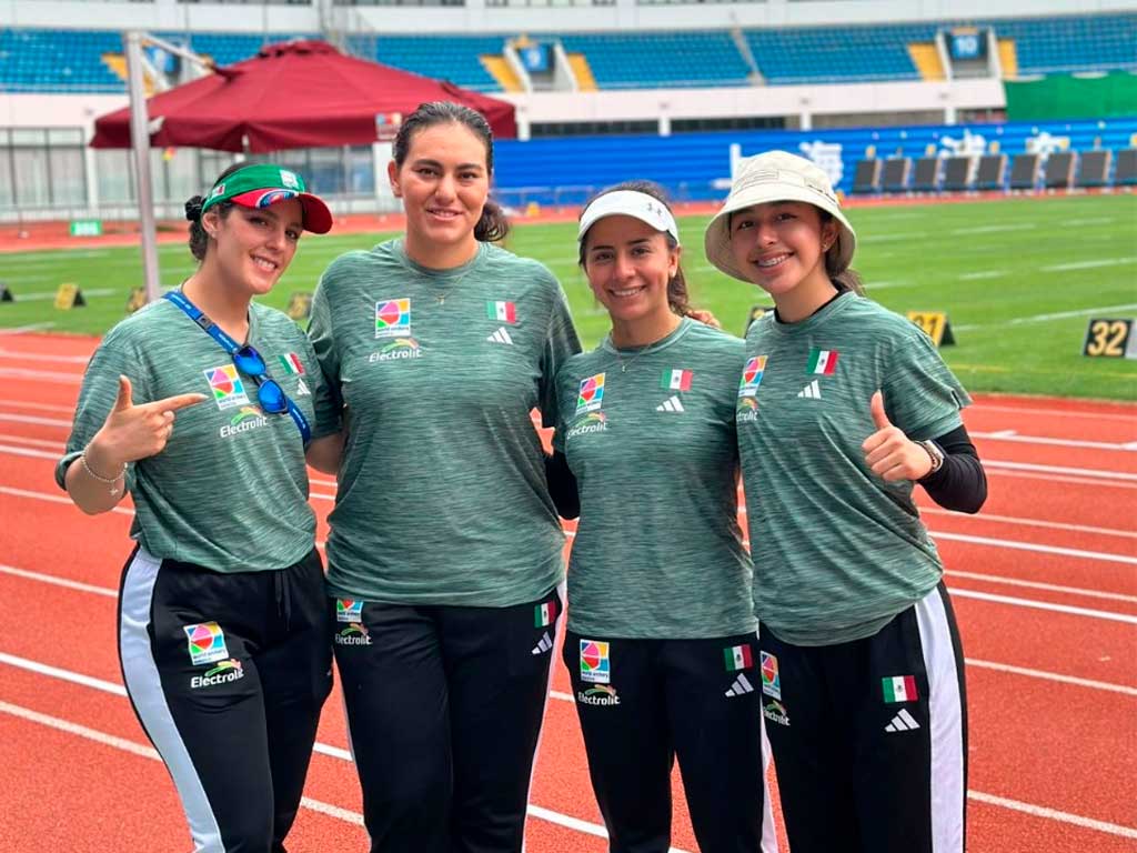 El equipo femenil de arco recurvo, conformado por Alejandra Valencia, Karime Montoya y Valentina Vázquez. Foto / Cortesía IG worldarcherymexico