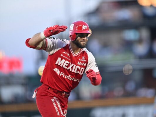 Después de un pitcheo digno de la Serie del Rey de Ariel Miranda, llegó el toletazo de cuatro esquinas de José Marmolejos, que pegó una línea que llegó a las gradas del jardín derecho y se llevó por delante a Robinson Canó, para el 7-0 de los ya virtuales campeones Diablos Rojos del México, en el quinto episodio.