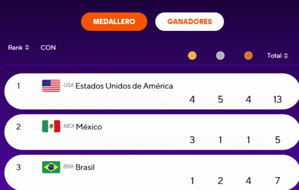A la conclusión del torneo, el equipo mexicano sumó tres medallas de oro, una de plata y una de bronce, para un total de 5 y quedó por debajo de Estados Unidos de América, que fue ampliamente dominador, y por encima de Brasil, que es una de las naciones fuertes en el continente.