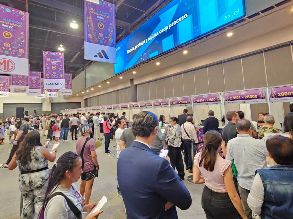 Fue un ir y un formarse en las ventanillas colocadas en uno de los salones del World Trade Center de la Ciudad de México, lo suficientemente amplio para la recepción de los cientos y miles de corredores que fueron este jueves a recibir su número y la tan distintiva playera.