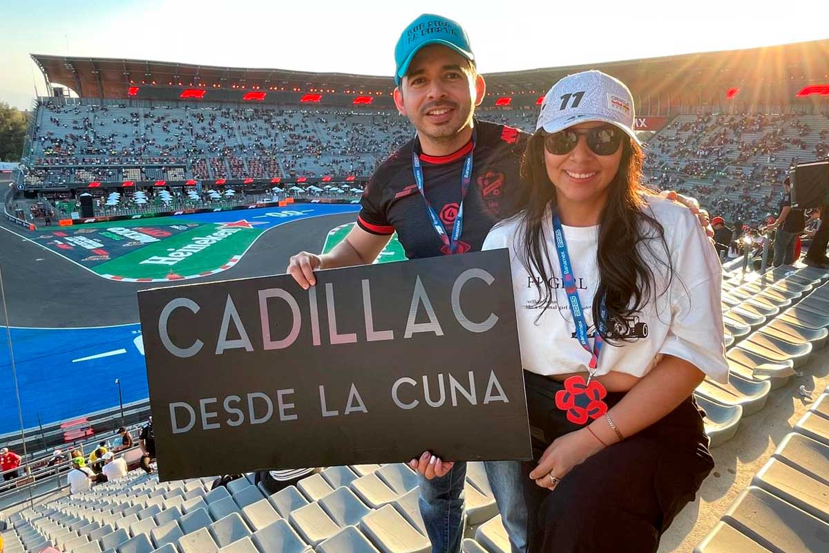Así lo mostró una pareja que portaba una cartulina con la leyenda «Cadillac desde la cuna» en clara alusión a que apoyarán a dicha escudería a partir de la próxima temporada, pues ahí estará Checo.
