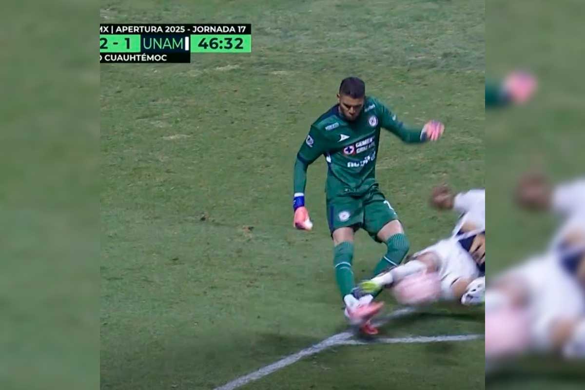 El silbante de inmediato calificó la acción con tarjeta amarilla y después de la reiterada y airada exigencia del técnico cruzazulino, el argentino Nicolás Larcamón, fue a ver la repetición del Video Asistente del Réferi (VAR) y, pese a ver la violencia de la acción, decidió mantener la tarjeta preventiva.