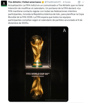 El medio de comunicación estadounidense The Athletic difundió este martes un comunicado de un portavoz de la FIFA, no identificado, al cual, se entiende, se le solicitó un posicionamiento ante esta posibilidad que México sea la sede de la Selección de Irán durante el Mundial 2026.