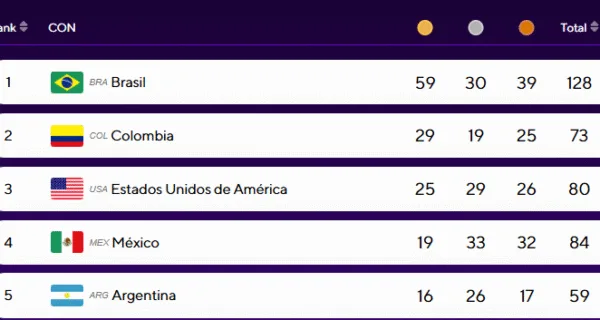 Después del día 11 de pruebas, México lleva 19 medallas de oro, 33 de plata, 32 de bronce y total de 84, para un cuarto lugar en la tabla y es seguido de Argentina, con 16, mientras que Chile se rezaga con 14.