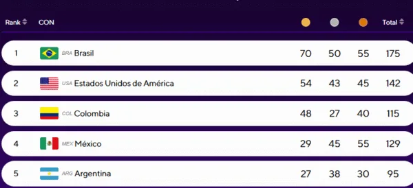 La delegación de México terminó finalmente en cuarto lugar en el cuadro de medallas de los II Juegos Panamericano Asunción 2025, con 29 medallas de oro, 45 de plata y 55 de bronce, para un total de 175.