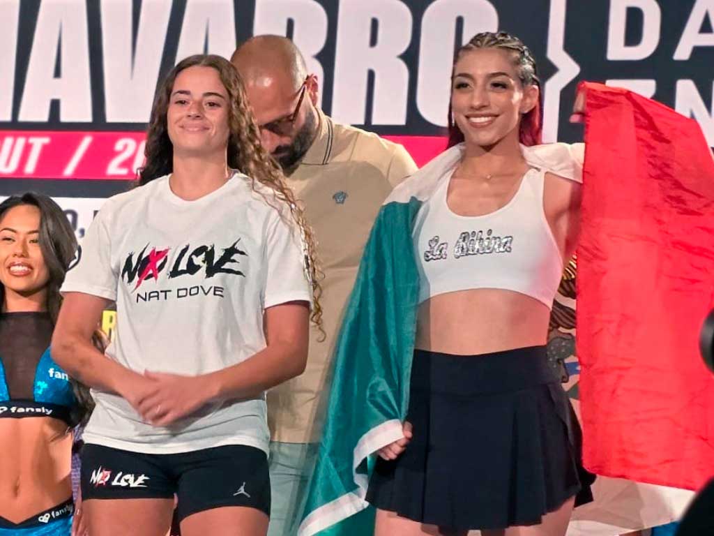 Ambas cumplieron este jueves en la ceremonia de pesaje para su pelea en supermosca; Nayeli con peso de 114.8 libras, y su rival con 114.6 libras.