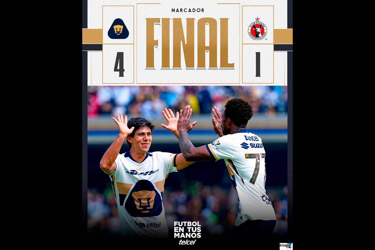 Pumas golea 4-1 a Xolos y está en zona de play in