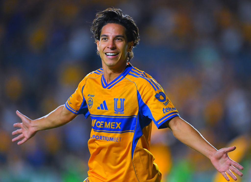 Diego Lainez y la felicidad de triunfar por goleada. AMEXI/Foto/@TigresOficial