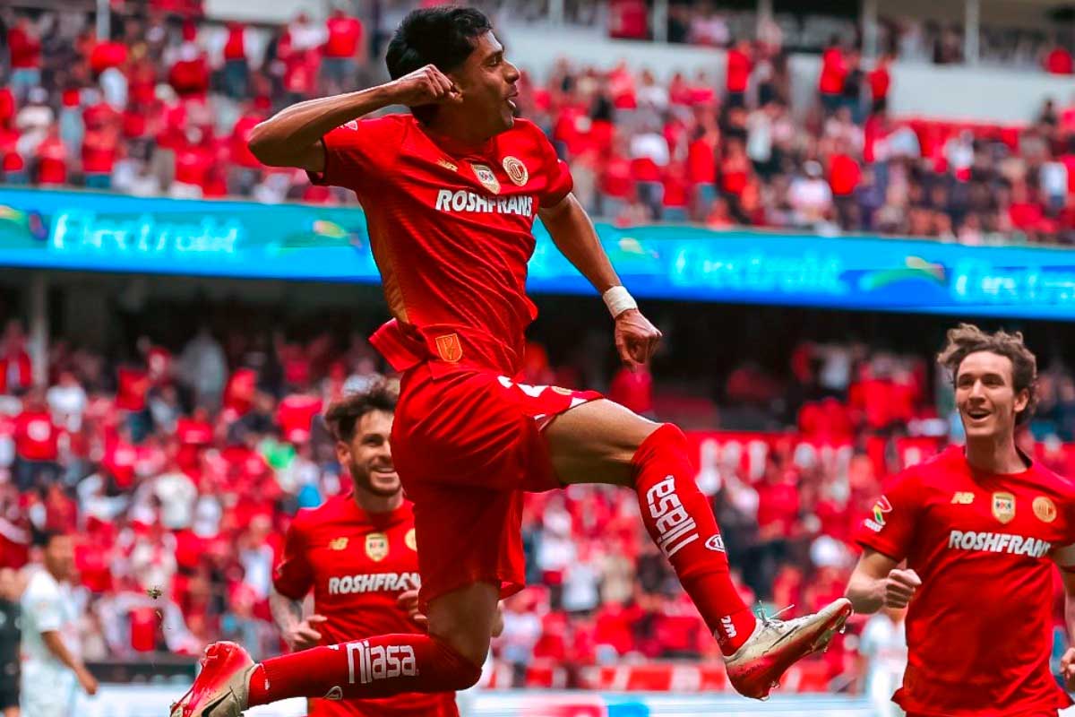 Gallardo celebra su gol en la victoria 2-0 de Toluca sobre Chivas. Foto / Cortesía X @TolucaFC