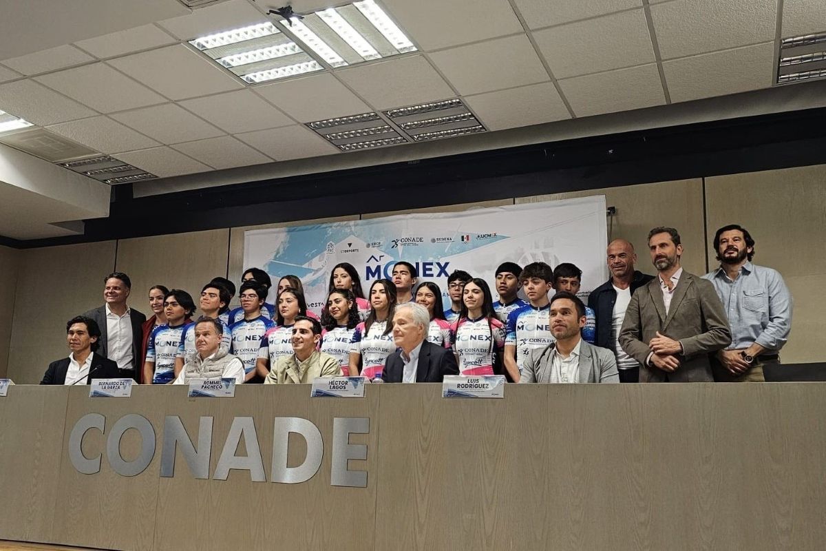 Los hermanos Alejandro y Luis Rodríguez, fundadores del proyecto; Bernardo de la Garza, presidente de la Union Ciclista de México; el empresario y patrocinador Héctor Lagos y el titular de la Conade, Rommel Pacheco, hicieron la presentación de una gran parte del equipo que viaja a Europa.