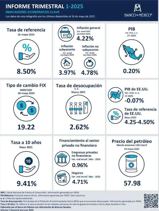 Recordó que, desde el informe previo del Banxico, Estados Unidos ha impuesto aranceles de diversa magnitud a gran parte de sus exportaciones y persiste el riesgo de que adopte medidas adicionales.