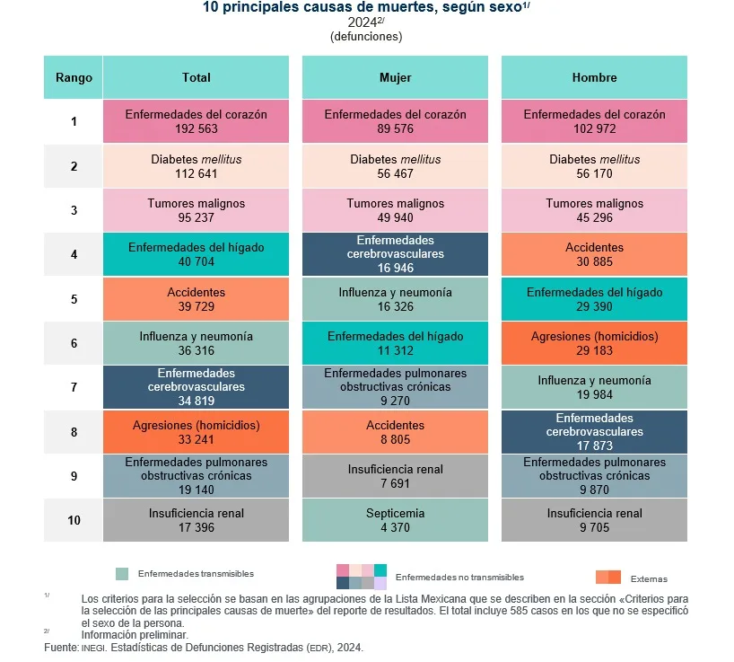 CDMX, a 8 agosto 2025. INEGI: 10 principales causas de muerte en 2024. AMEXI/Foto/INEGI-Cortesía.