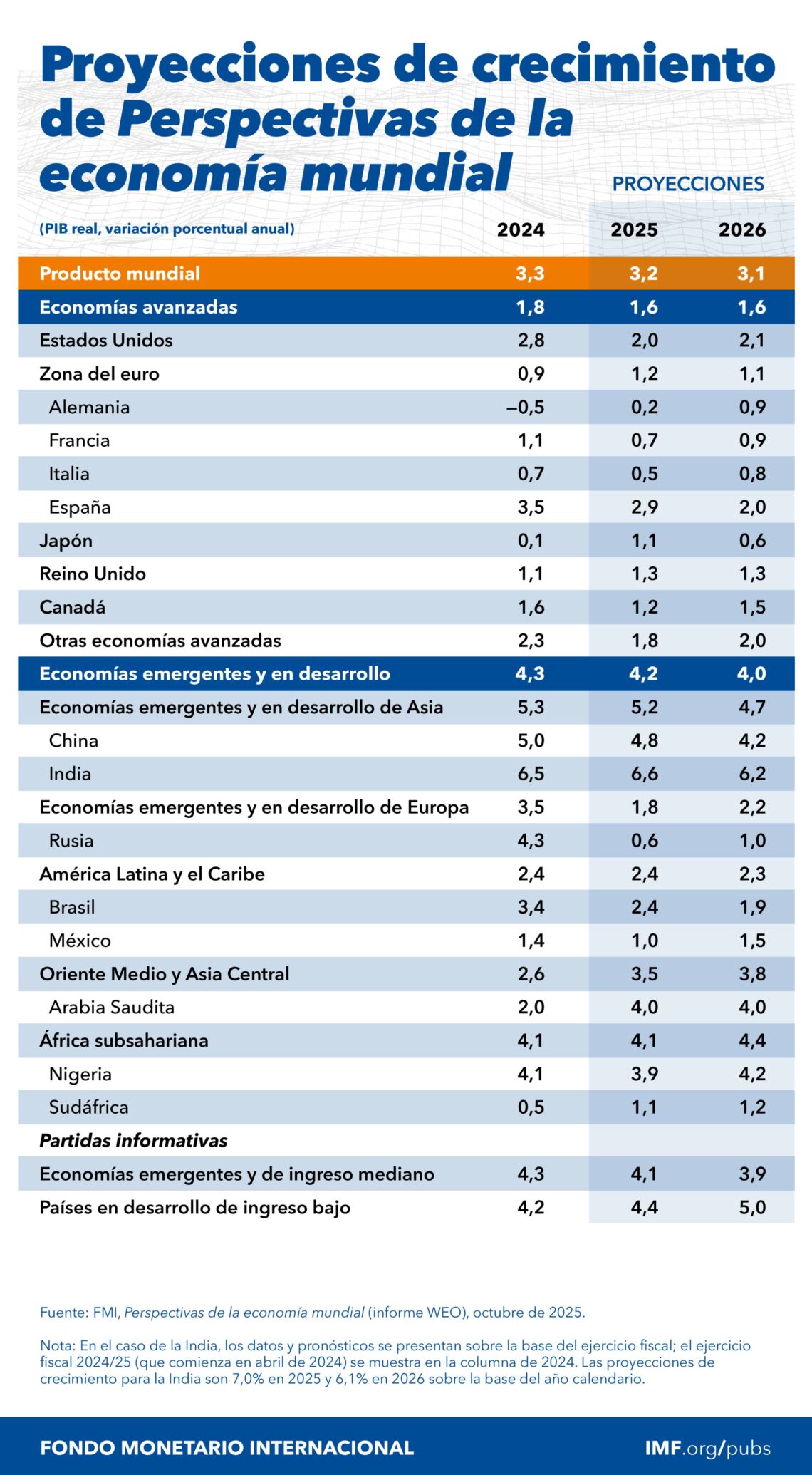 No obstante, esto representa una desaceleración del crecimiento mundial desde 3.3% en 2024.