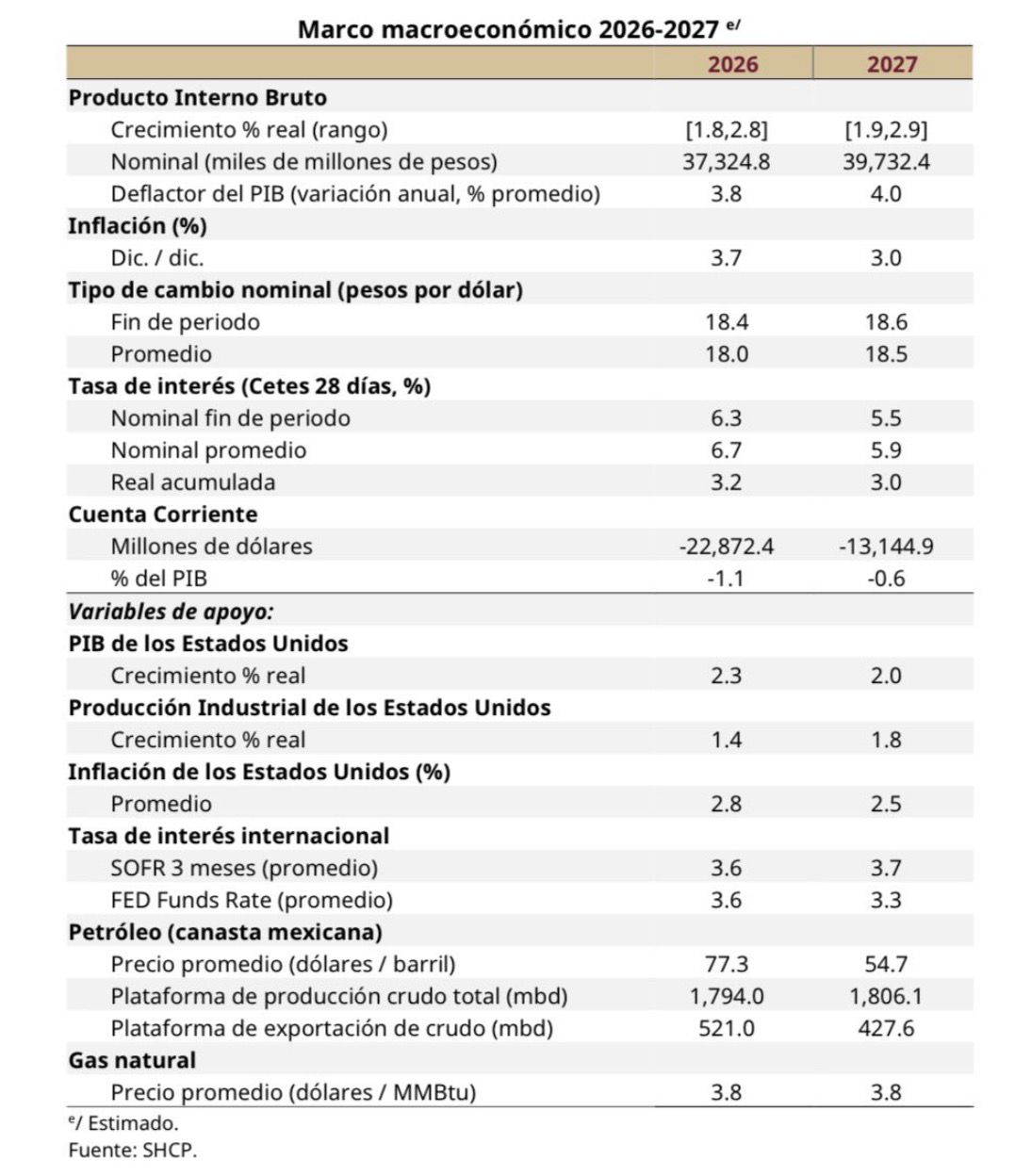 En el documento Pre-Criterios Generales de Política Económica, entregado esta tarde a la Cámara de Diputados, la dependencia delineó el marco preliminar de las perspectivas macroeconómicas y fiscales que servirán de base para el Paquete Económico 2027.