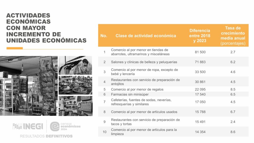 Los resultados de los Censos Económicos 2024 en México revelan un interesante fenómeno sobre el aumento de negocios en diversos sectores, en especial en el comercio de las llamadas tienditas y los salones de belleza, entre otros.