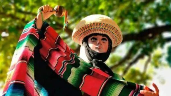 Sobre la indumentaria, explicó que el proceso inicia con la colocación de los listones cruzados sobre el pecho, que pueden ser uno, dos o tres de cada lado, pero también se usa una la chalina negra atada a la cintura y colgando sobre el pantalón, seguida del sarape de colores.