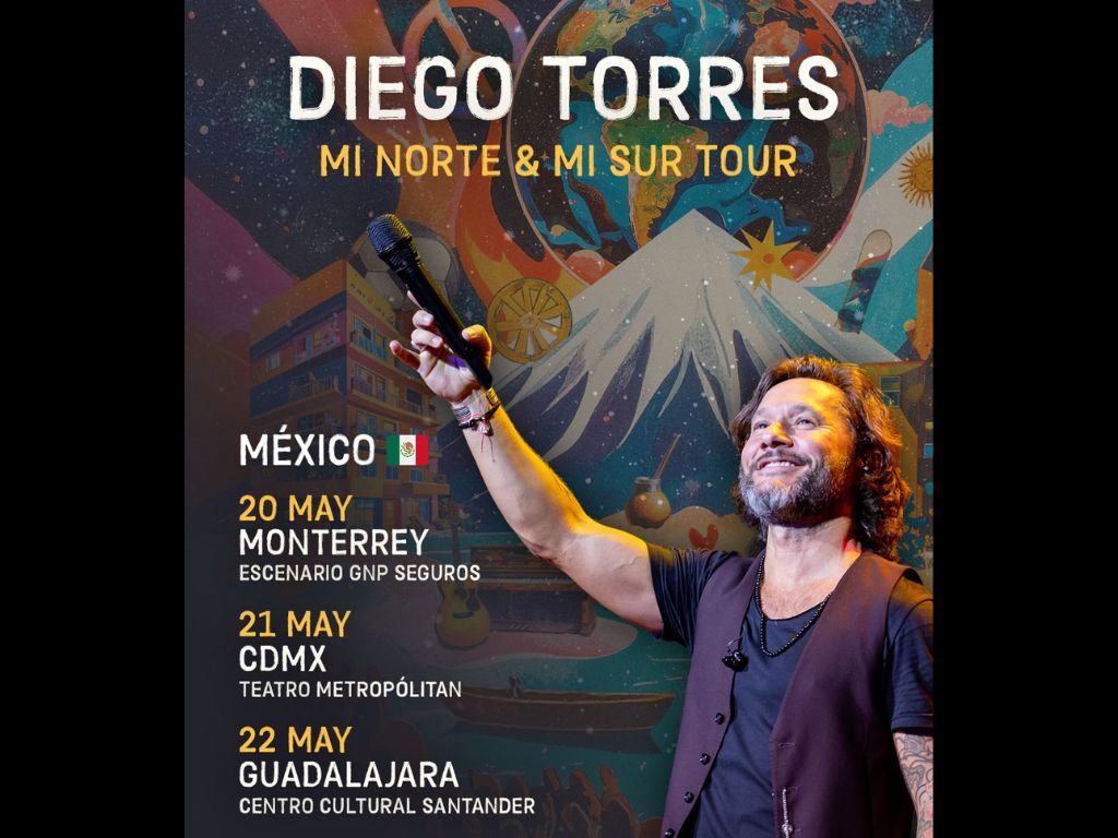 El cantante argentino Diego Torres presenta su gira Mi Norte & Mi Sur, con tres fechas: el 20 de mayo en Monterrey, el 21 de mayo en Ciudad de México en el Teatro Metropólitan y el 22 de mayo en Guadalajara.