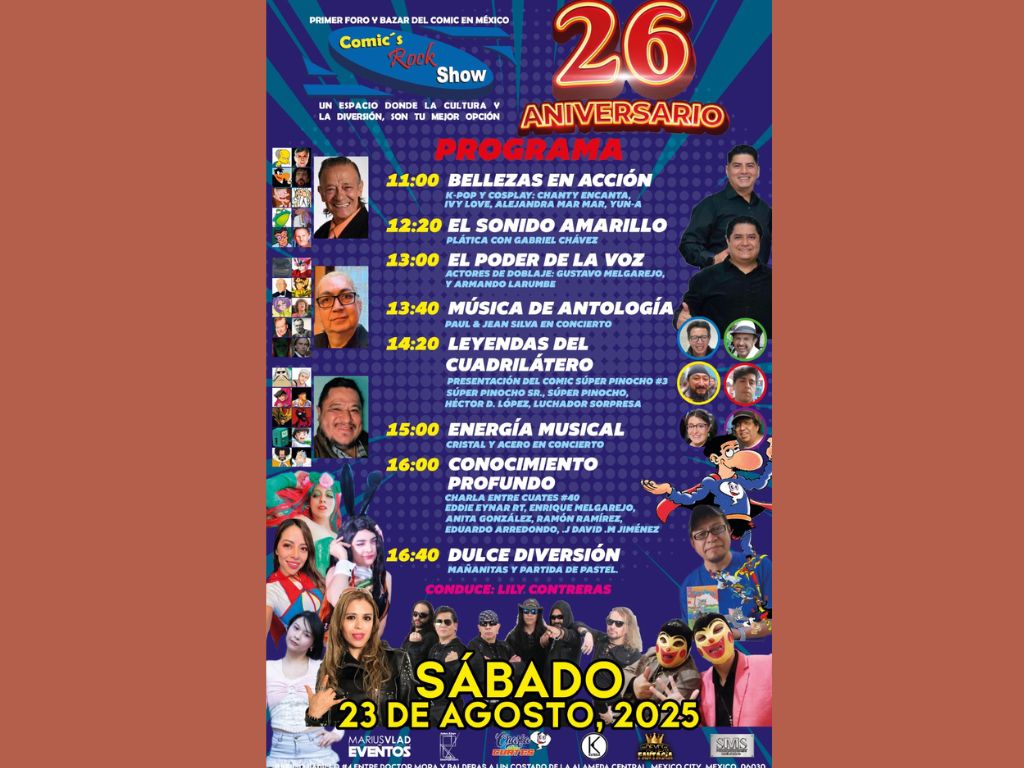 El icónico Comics Rock Show se alista para celebrar este 23 de agosto 26 años de vida, reafirmando su posición como un espacio en la capital más grande del mundo, donde los superhéroes conviven con guitarras eléctricas, las portadas de cómics con discos de vinilo, y donde la imaginación siempre encuentra su territorio natural. El acceso será gratuito.