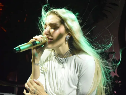 Elena Rose subió al escenario con su rubia cabellera y luciendo un vestido blanco, “Para mí es un regalo que esto esté pasando en México, mi primer álbum en debut lo pueda estar haciendo desde acá”, dijo la cantante y compositora.