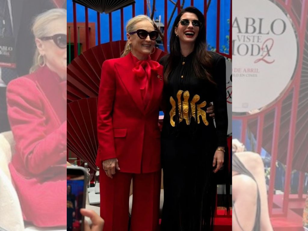 Previo a su llegada, Hathaway compartió en redes sociales detalles de su viaje, donde destacó una sudadera con el característico tono azul cerúleo, referencia al icónico vestuario de la primera entrega, El Diablo Viste a la Moda.