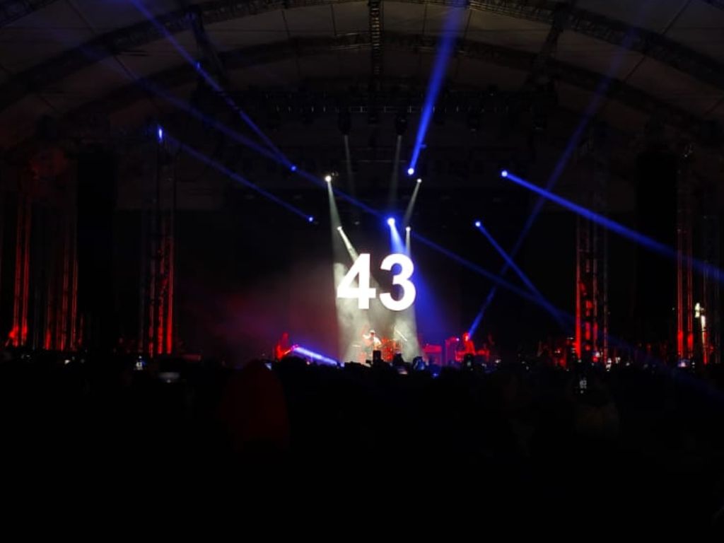 En las pantallas del concierto, Morello proyectó imágenes de miembros del Ejército Zapatista de Liberación Nacional y el número 43, en referencia a los normalistas desaparecidos en Iguala, Guerrero, en 2014.