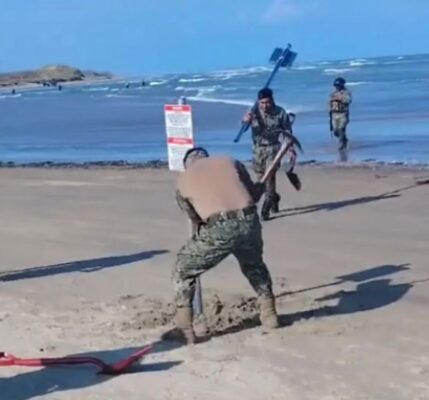 En un operativo coordinado, la Secretaría de Marina (Semar) y la Guardia Nacional (GN) realizan patrullajes por tierra y aire con drones en la zona del litoral de Oaxaca, debido al saqueo de nidos de huevos de tortuga.