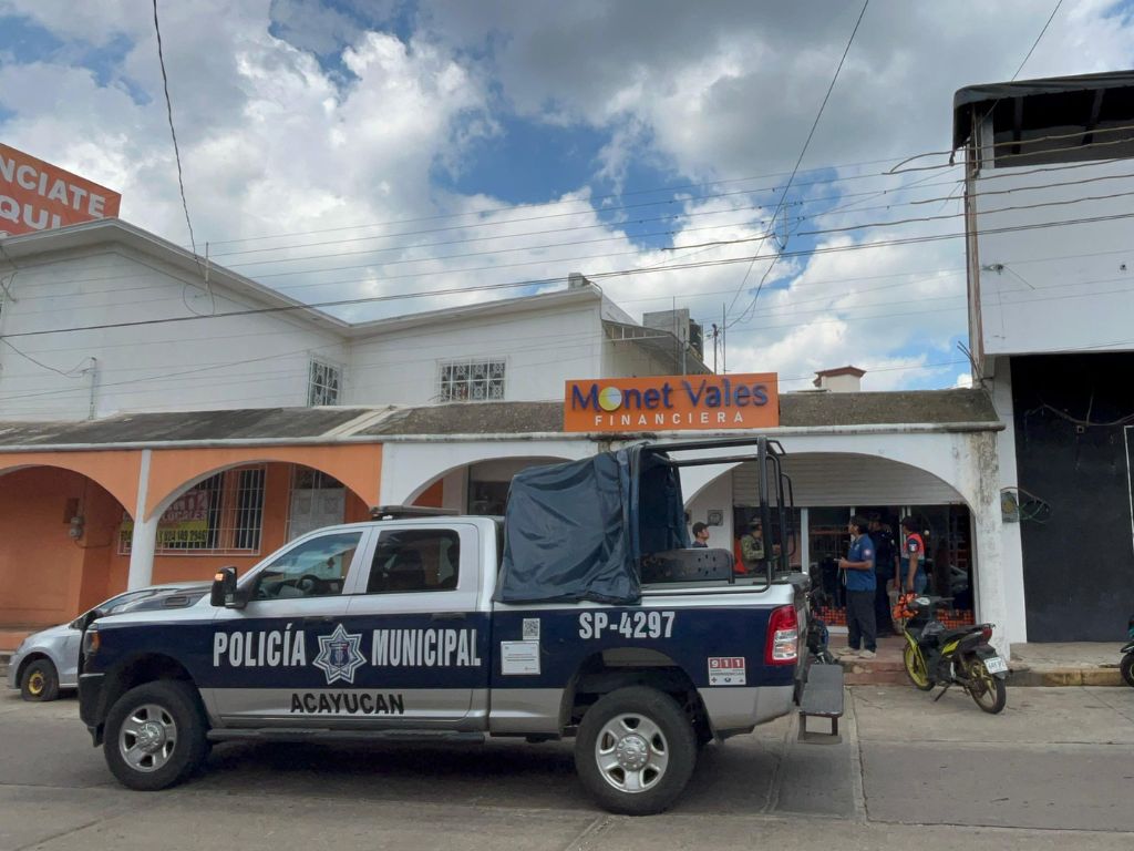 Momentos de terror vivió una madre de familia y clientes de la financiera Monet Vales, en el municipio de Acayucan, Veracruz, debido a que unos ladrones tomaron de rehén a un menor de edad para perpetrar el robo del comercio.