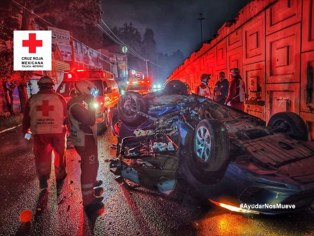 Un trágico accidente se registró la madrugada de este sábado en Toluca, Estado de México, cuando un vehículo cayó del puente de Paseo Tollocan, a la altura de la avenida Heriberto Enríquez, quedando volcado en la vía lateral.
