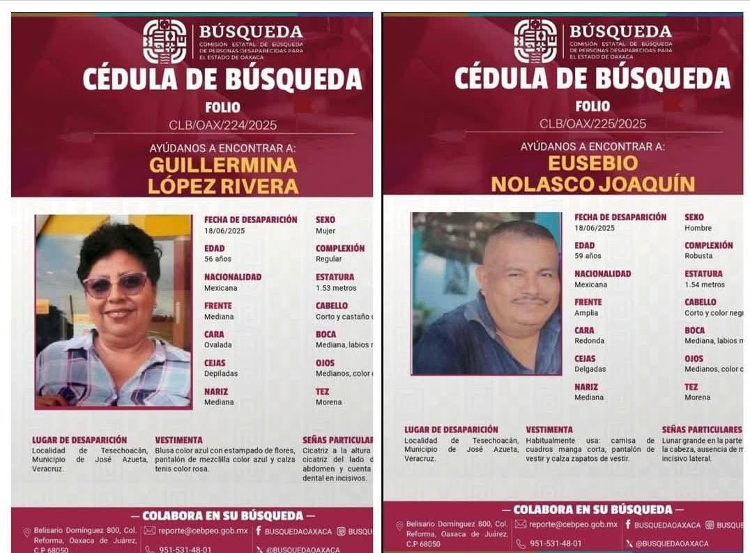 Policías y agentes ministeriales buscan a Eusebio Nolasco, de 59 años, y a Guillermina López, de 56, padres de la excandidata del Partido Verde Ecologista de México (PVEM) a la diputación de Tuxtepec, Oaxaca, Ilse Mariela Nolasco.