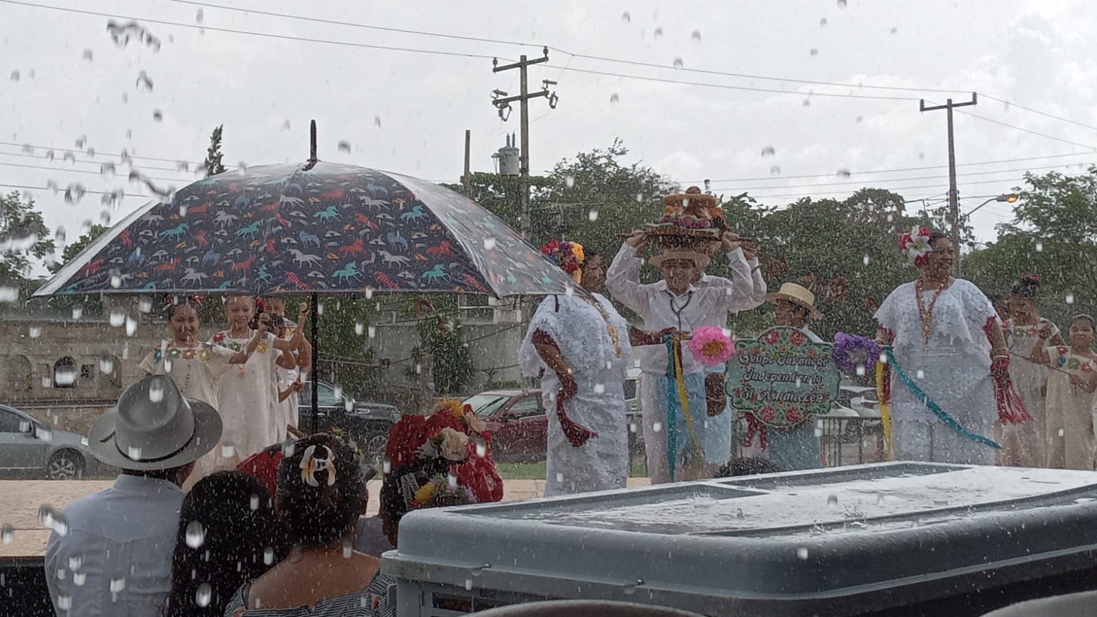 Bajo un aguacero, sin que nadie los llamara a protegerse, un grupo de niños y niñas con sus llamativos ternos tradicionales de esta comisaría de Oxcum, una de las más relegadas del desarrollo social de Yucatán, desplegó su baile de jarana ante la vista de funcionarios de gobierno, diputados federales y locales de la 4T.