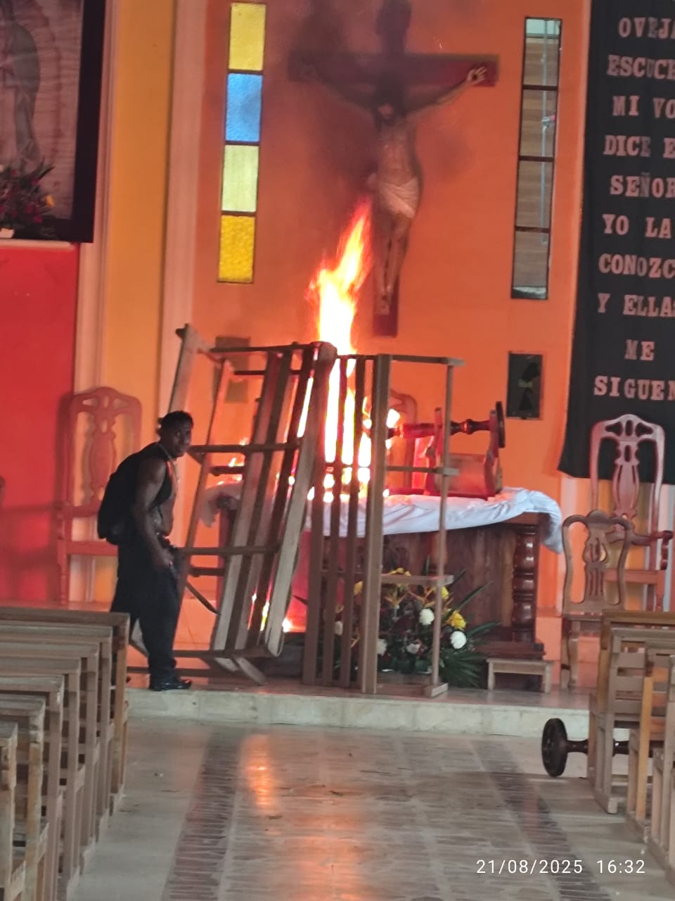 Un hombre de mediana edad, ingresó a la iglesia «Nuestra Señora de Guadalupe» de la localidad de Tilapan en San Andrés Tuxtla, Veracruz,  para prenderle fuego.