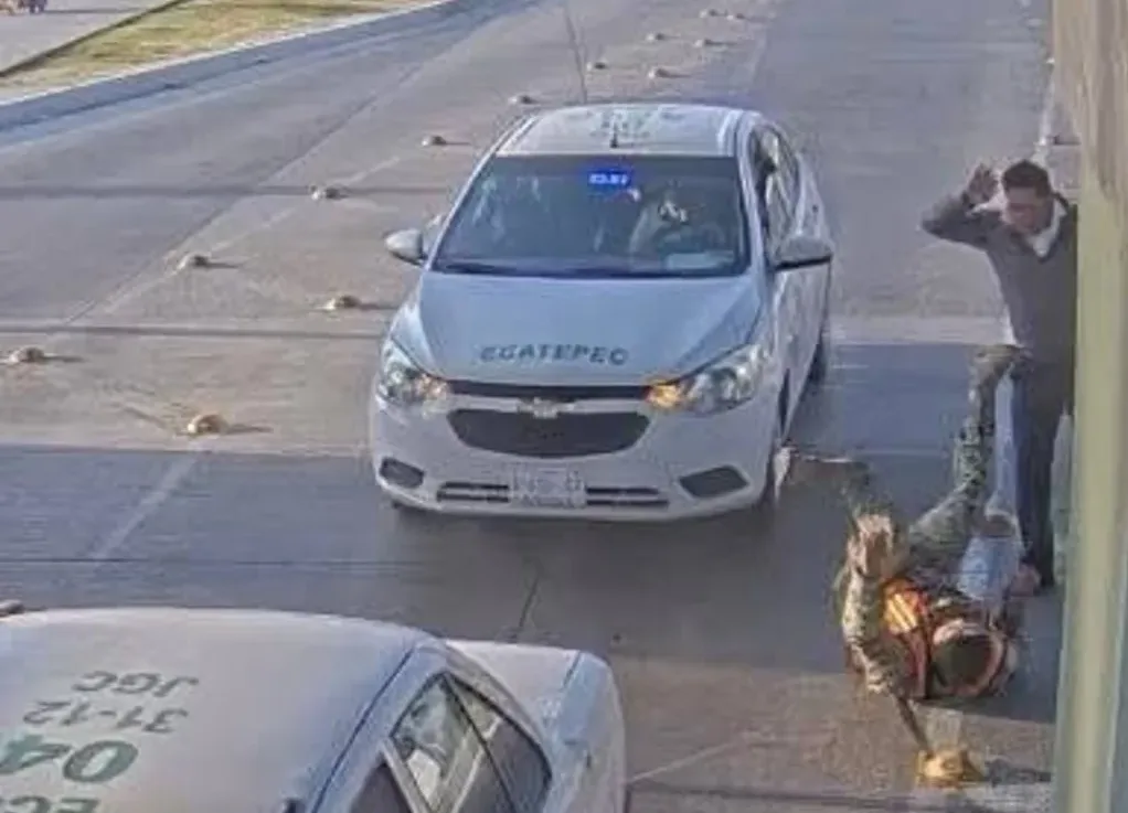 Taxista atropella a elemento de la Sedena en filtro de seguridad en Tecámac, Edomex