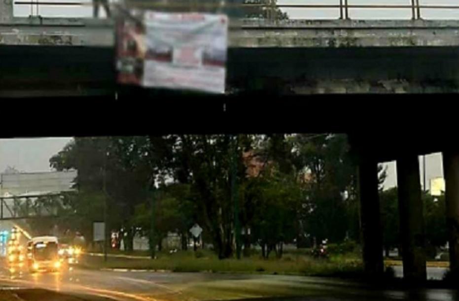 La lona fue colgada en uno de los barandales del puente vehícular de la Avenida Escuadrón 201 (Décima), localizado entre las colonias Jardines de Guadalupe y Francisco Zarco.