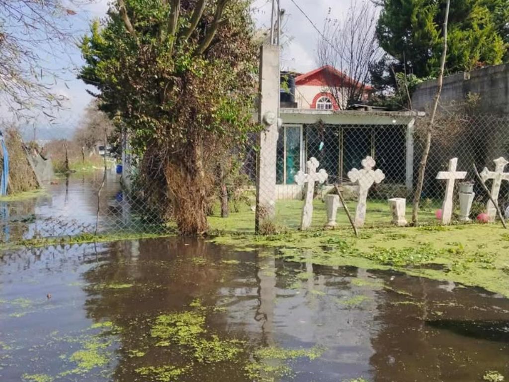 En la colonia San Miguel, el agua verdosa permanece sobre patios y milpas; los vecinos responsabilizan a autoridades estatales y municipales por no actuar a tiempo frente al desbordamiento del río Lerma. Afirman que las alertas comenzaron desde julio, pero las cuadrillas para desazolvar y reforzar bordos llegaron cuando las calles ya estaban bajo el agua.