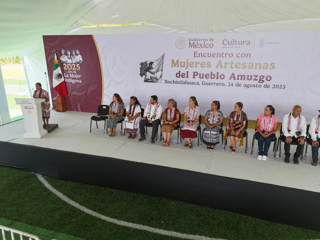 La presidenta Claudia Sheinbaum Pardo encabezó una asamblea con artesanas en el municipio de Xochistlahuaca, Guerrero, donde refrendó su compromiso con las comunidades indígenas.