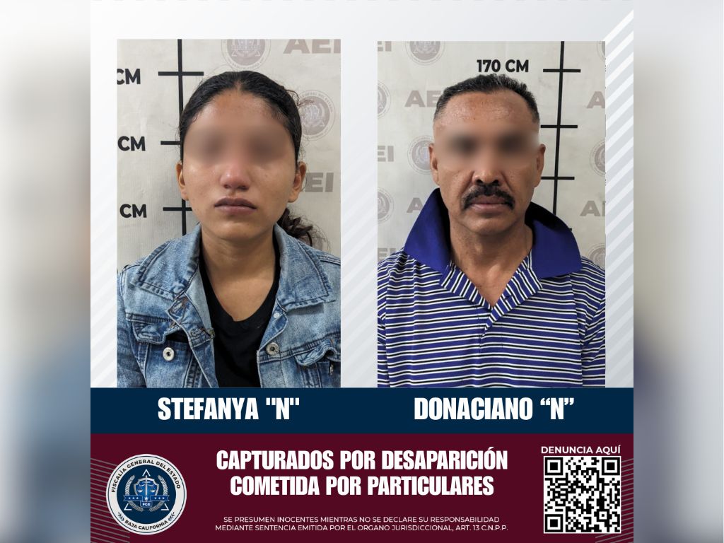De acuerdo con un comunicado, los detenidos fueron identificados como Stefanya “N”, de 19 años, y Donaciano “N”, de 53, a quienes localizaron y capturaron el pasado 9 de junio en el poblado de Maneadero, al sur del municipio ensenadense.