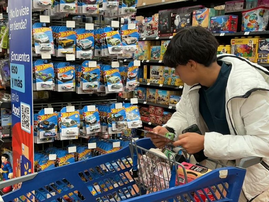 Concentrado en elegir el mejor Hot Wheels, este joven busca el regalo perfecto para celebrar el Día del Niño en un pasillo lleno de opciones. AMEXI/Foto: cortesía