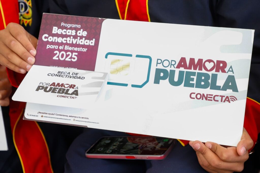 Gobierno de Puebla entrega becas de conectividad para la educación.