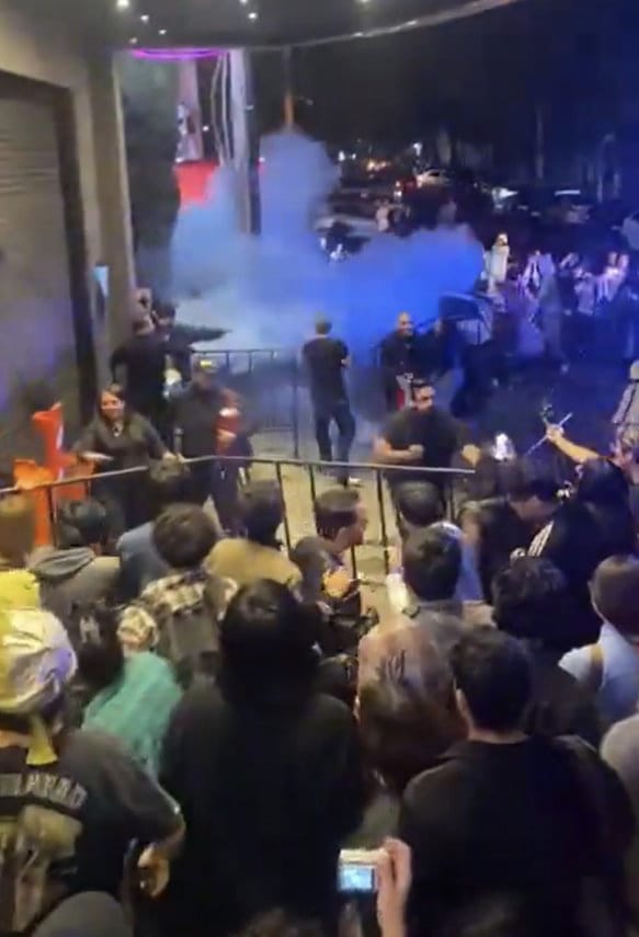 Algunos asistentes intentaron entrar por la fuerza, lo que derivó en una respuesta desproporcionada del staff: comenzaron a vaciar extintores contra la multitud. AMEXI/ FOTO/ REDES SOCIALES