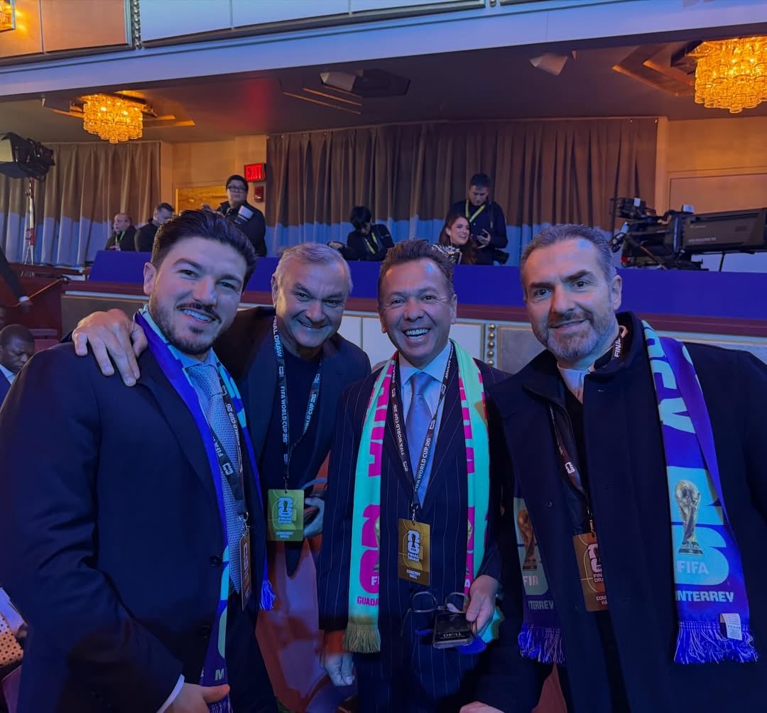 Gobernadores de Jalisco y Nuevo León previo al sorteo de la FIFA. AMEXI/ Foto: RRSS