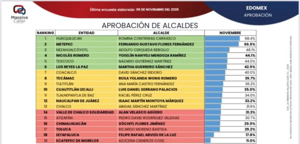 El gobierno de Chalco recibió una baja aprobación en la más reciente encuesta de Massive Caller levantada el 6 de noviembre de 2025. Los habitantes de Chalco entrevistados califican con severidad el desempeño del gobierno que encabeza la presidenta municipal Abigail Sánchez Martínez. De acuerdo con la misma encuesta, la alcaldesa aparece en los últimos lugares de aprobación y confianza entre los munícipes del Estado de México.