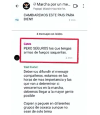 El secretario de Gobierno, Jesús Romero López, presentó como pruebas varias cuentas en Facebook, Instagram y hasta grupos de Whatsapp donde se llamaba a los asistentes a la marcha del sábado pasado a causar confrontaciones.
