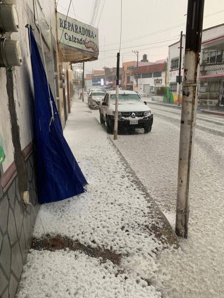 Vecinos documentaron el granizo que “pintó de blanco” diversas calles del municipio, generando postales inusuales y, al mismo tiempo, complicaciones para el tránsito vehicular y peatonal.